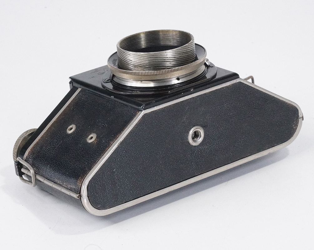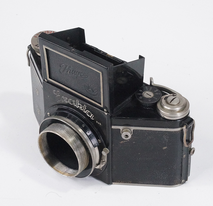 VEST POCKET EXAKTA MODEL B, BLACK, VERSION 4, WITH 75/3.5 IHAGEE EXATAR, SHUTTER RUNS, BUT NOT RELIABLY, LENS WILL NOT COME OFF, GLASS HAS MANY CLEANING MARKS ON THE FRONT AND A LITTLE HAZE, LOOKS EX-