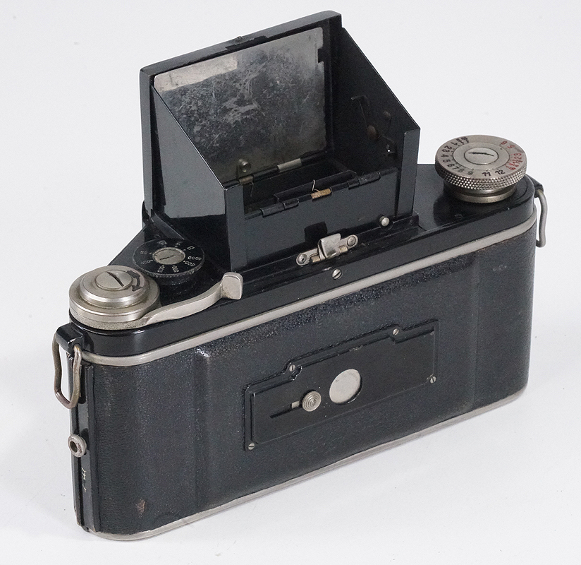 EXAKTA VXIIA BODY, VERSION 3, NO FINDER, SHUTTER DOES NOT RUN, ONLY ONE CURTAIN IS VISIBLE (AND IT IS FULL OF PINHOLES), PAINT MISSING FROM THE TOP OF THE BACK PLATE, ELSE EX