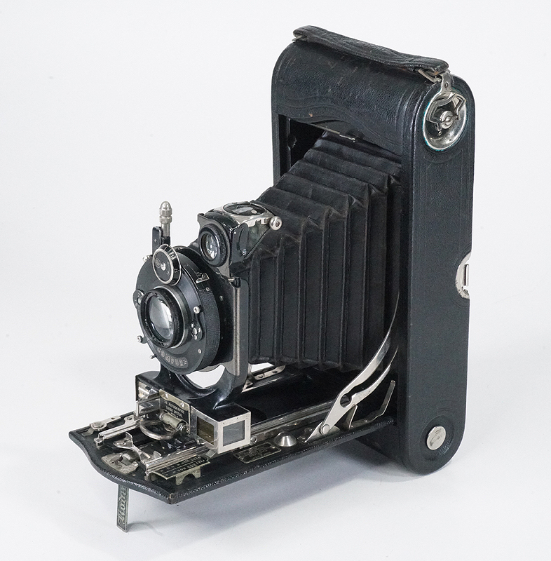 NO. 3A AUTOGRAPHIC MODEL C, 173/7.9 KODAR IN KODEX NO. 1, USES 122 FILM, WITH BOX, STYLUS, EMPTY SPOOL, SHUTTER RELEASE CABLE AND TORN, EXTENSIVELY WRITTEN-IN INSTRUCTION BOOK, ADVANCE NOT UNIDIRECTIONAL, GLASS HAS STRONG HAZE AND DEPOSITS, FINDER DIRTY, PINHOLES IN BELLOWS, LOOKS EX