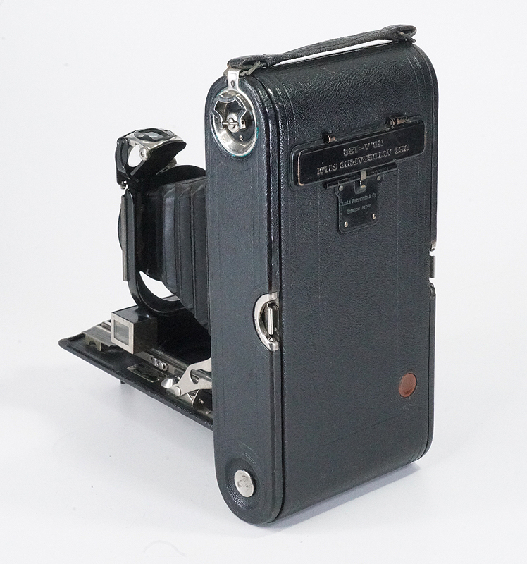 NO. 3A FOLDING POCKET MODEL C, USES 122 FILM, WITH BOX (LIQUID DAMAGE IN ONE CORNER) AND EMPTY SPOOL, WORKING ALTHOUGH SHUTTER IS OCCASIONALLY STICKY IN BULB MODE, ADVANCE NOT UNI-DIRECTIONAL, RISE HEIGHT LOCK INEFFECTIVE, FINDER DIRTY, BITS OF OXIDATION AND BUMPS ON SOME SURFACES, OTHERWISE LOOKS EX