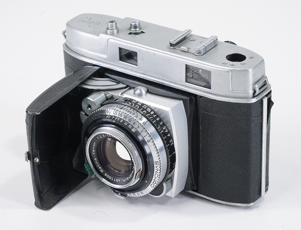 RETINA IIc, 50/2.8 SCHNEIDER XENAR, SHUTTER AND RANGEFINDER WORK, FINDER IS A BIT CLOUDY, LENS HAS A FEW LIGHT CLEANING MARKS, SMALL CORNER DENT ON TOP FRONT, ELSE LOOKS EX