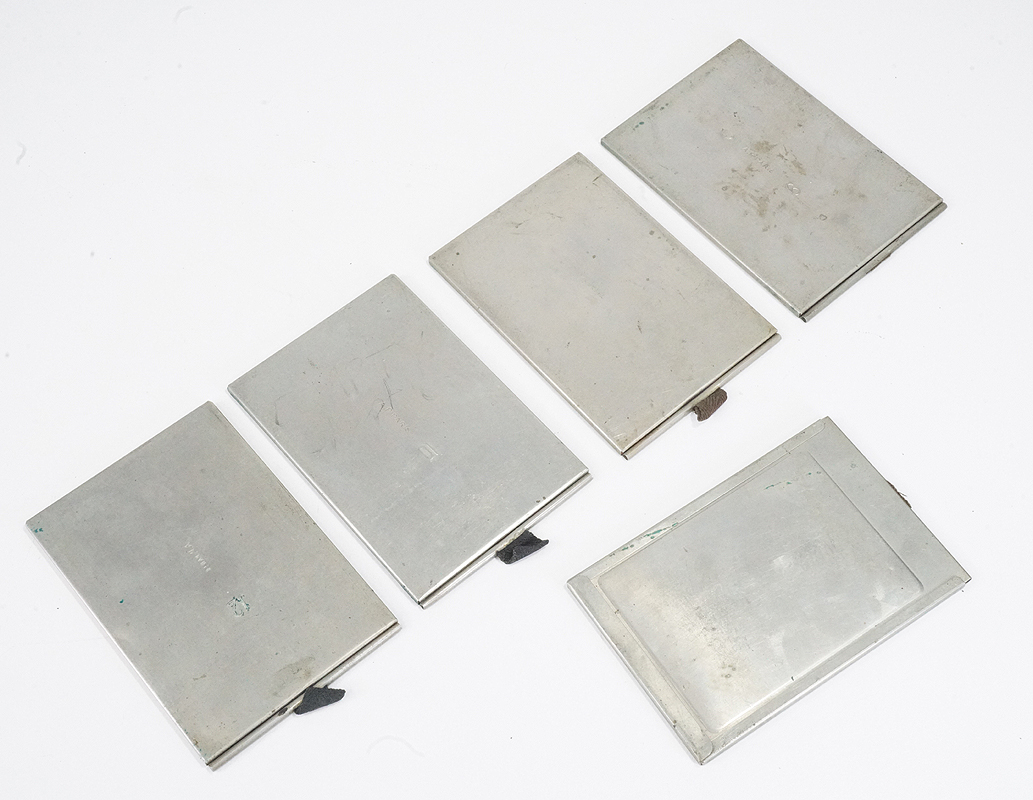 6.5X9CM PLATE HOLDERS, LOT OF FIVE, NICKEL, TWO ARE MISSING THEIR