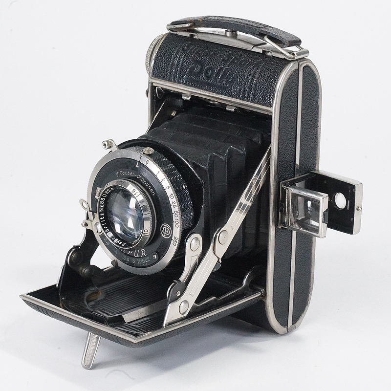 CAMERA IS IN NICE SHAPE WITH THE SEAL STILL FAINTLY GOLD, LOOKS EX+.