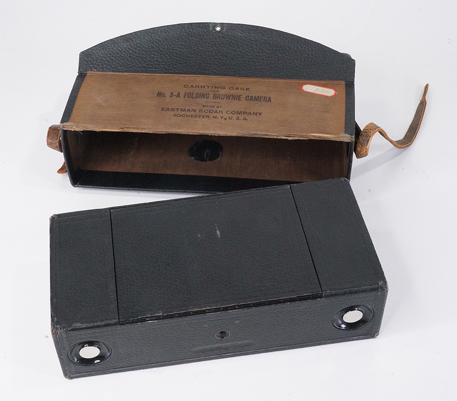 NO. 3A FOLDING BROWNIE, MODEL A, WITH WORN CASE (STRAP IS TORN),