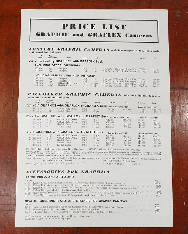 PRICE SHEET FOR PLATES AND FILM, STARTING TO TEAR ON THE FOLD, ELSE EX