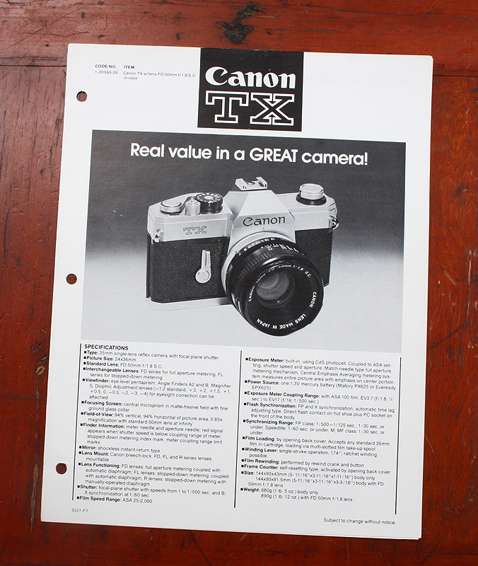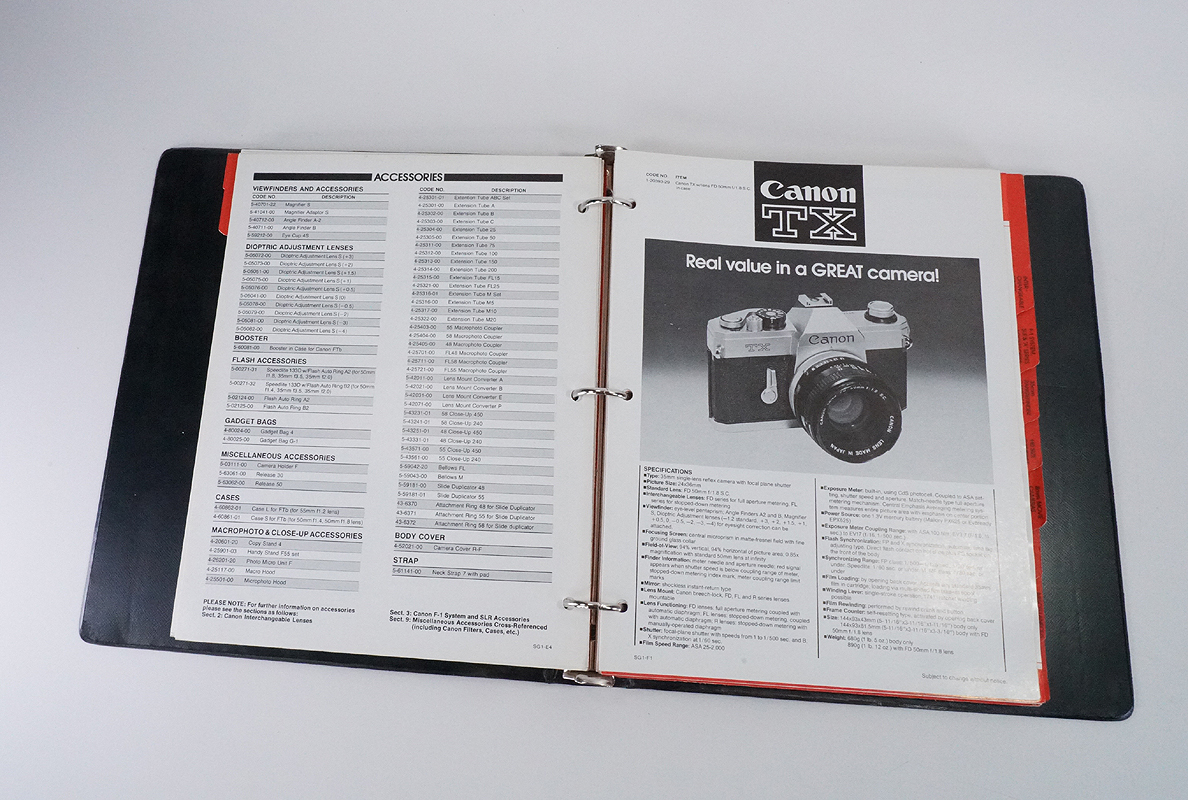 CANON DEALER NOTEBOOK PAGES FOR TLb, 4 PAGES, EX+