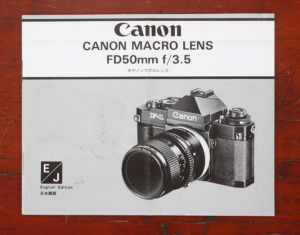 CANON 50/3.5 CANON MACRO FD SSC INSTRUCTION BOOK, ENGLISH AND JAPANESE, 09/77, EX