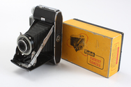 KODAK TOURIST II, 105/6.3 ANASTON, BOXED, SHUTTER PROBLEMS, AS-IS/cks/195211 $44KODAK TOURIST II, 105/6.3 ANASTON IN FLASH 200, USES 620 FILM, WITH BOX, PACKING, EMPTY SPOOL AND INSTRUCTION BOOK, SHUTTER DOES NOT FIRE PROPERLY AT TWO HIGHEST SPEEDS, BULB MODE DEFECTIVE, PINHOLES IN BELLOWS, FINDER DIRTY, SOLD AS-IS FOR DISPLAY PURPOSES ONLY, LOOKS EX