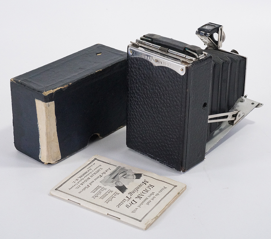 2-1/4 X 3-1/4 KODAK PREMOETTE JR., BOXED, SOME ISSUES, AS-IS/cks/194033 $80KODAK PREMOETTE JR., BAUSCH & LOMB PLANATOGRAPH, 2-1/4 X 3-1/4, WITH TAPED-UP BOX, BULB AND TIME FUNCTION INCONSISTENTLY, FRONT ELEMENT HAS DEGRADED AND DISCOLORED, LEATHERETTE LIFTING IN A FEW SPOTS, SOLD AS-IS FOR DISPLAY PURPOSES ONLY, LOOKS EX-