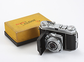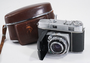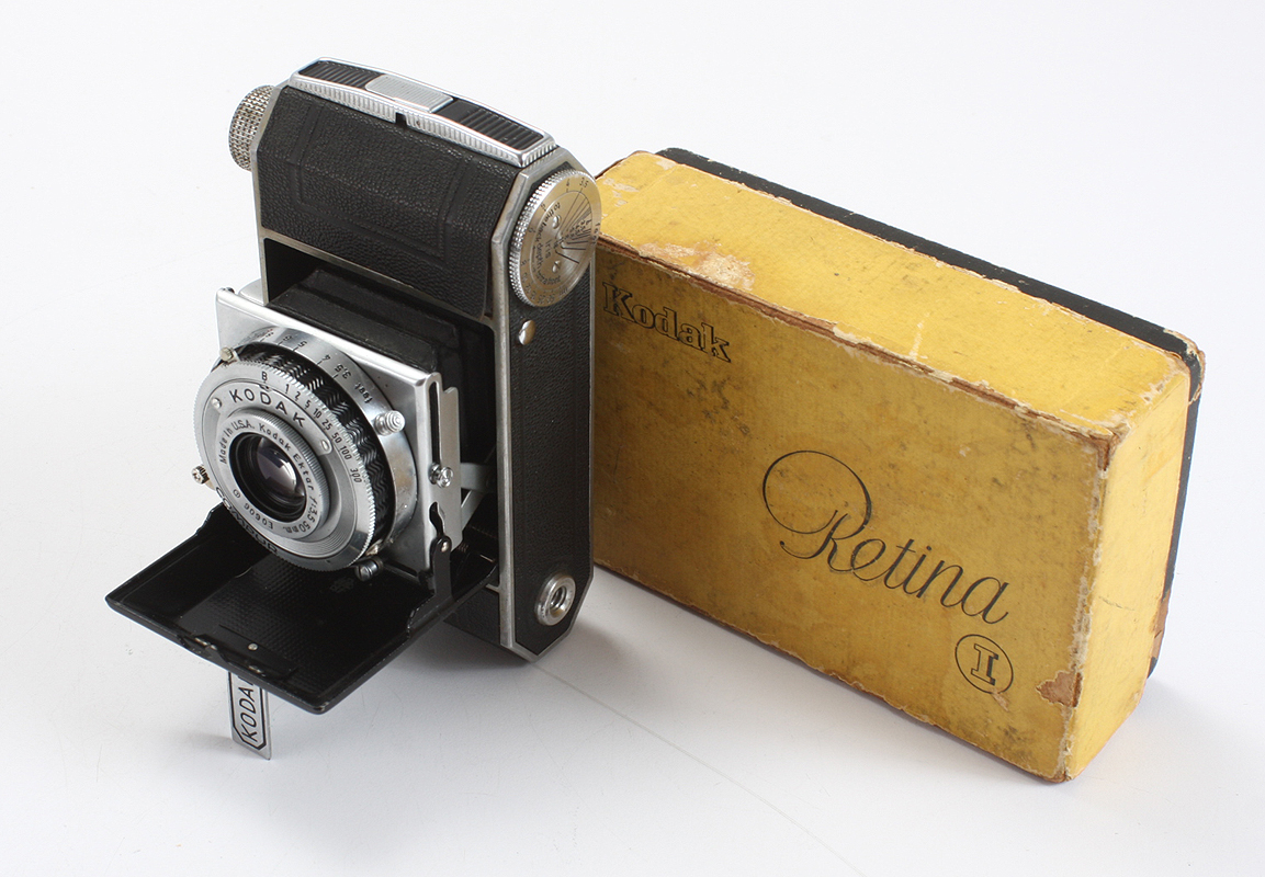 KODAK AG RETINA I, 50/3.5 XENAR (HAZE), BOXED, ENGRAVED, SOME ISSUES/cks/200164 $76KODAK AG RETINA I TYPE 010, 50/3.5 SCHNEIDER-KREUZNACH RETINA-XENAR IN COMPUR-RAPID, WITH STAINED BOX AND WATER-DAMAGED INSTRUCTION BOOK (SOME PAGES STUCK TOGETHER), WORKING EXCEPT EXTRA TENSION FOR 1/500 DOES NOT ENGAGE, FOCUS SOMEWHAT STIFF, GLASS HAS STRONG HAZE, SOME DUST AND DEBRIS PLUS A FEW LIGHT SCRATCHES ON THE REAR ELEMENT, ENGRAVED, LEATHERETTE LIFTING IN VARIOUS SPOTS, AREAS OF OXIDATION, OTHERWISE LOOKS EX
