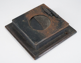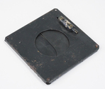 LENS BOARD, 225MM SQUARE, ROUGHLY 135MM HOLE, WITH HARDWARE FOR AIR RELEASE, LOOKS EX-
