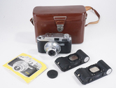 KRASNOGORSK HORIZONT, 28/2.8 OF-28P FIXED-FOCUS, SHUTTER ISSUE, AS-IS/sse/225272 $95KRASNOGORSK HORIZONT, 1968, 28/2.8 OF-28P FIXED-FOCUS, WITH FINDER, DRUM DOES NOT ROTATE AT A CONSISTENT SPEED WHEN RELEASED (AND IS PROBABLY SLOW AS WELL), APERTURE DIAL FAIRLY STIFF, REWIND SHAFT VERY LOOSE AND NOT SECURE (CAN EASILY BE REMOVED FROM BODY), SLIGHTLY ROUGH FEEL TO ADVANCE, LENS APPEARS SOMEWHAT DUSTY, FINDER USEABLE, BUBBLE INTACT, BODY SHOWS A FEW SCRATCHES AND MARKS, SOLD AS-IS FOR DISPLAY OR REPAIR ONLY, LOOKS EX. FROM THE STEPHEN SHOHET COLLECTION