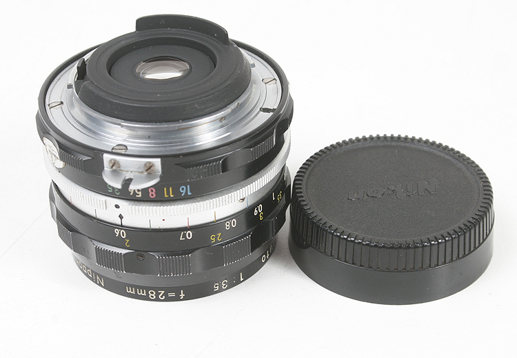 28/3.5 NIKON NIKKOR-H NON-AI, WITH REAR CAP, GLASS HAS SOME DUST AND DEBRIS, LOOKS EX