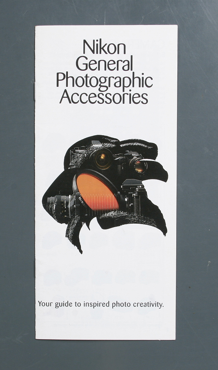 NIKON ACCESSORIES SALES BROCHURE. STAMPED ON BACK, SILVIO'S PHOTOGRAPHIC CENTER, TORRANCE, CA. LOOKS EX+. PRINTED 1984