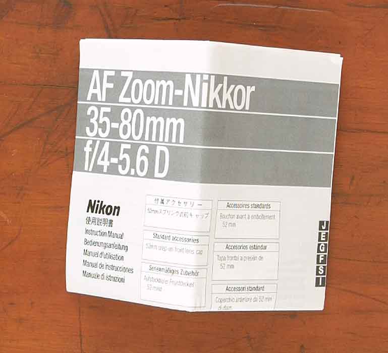 NIKON 35-80/4-5.6AF-D NIKKOR INSTRUCTION BOOK, EX