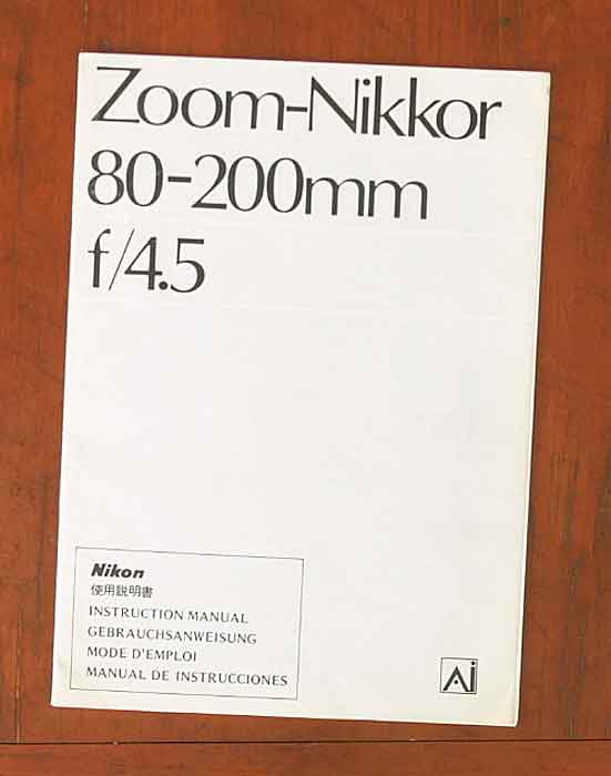 NIKON 80-200/4.5 ZOOM-NIKKOR AI INSTRUCTION BOOK, EX