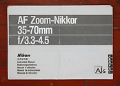 NIKON 35-70/3.3-4.5 AF NIKKOR INSTRUCTION BOOK, EX+