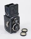 ROLLEI ROLLEIFLEX BABY 4X4 4RF410, 60/3.5 TESSAR + UNUSUAL FILTER/225900 $275ROLLEI ROLLEIFLEX BABY 4X4 4RF410, 60/3.5 TESSAR, WITH AN UNUSUAL UNMARKED LIGHT YELLOW FILTER, SHUTTER WORKS, GLASS HAS A BIT OF INTERNAL HAZE, MISSING THE LEATHER FROM THE FRONT OF THE LENS PANEL, ELSE LOOKS EX-