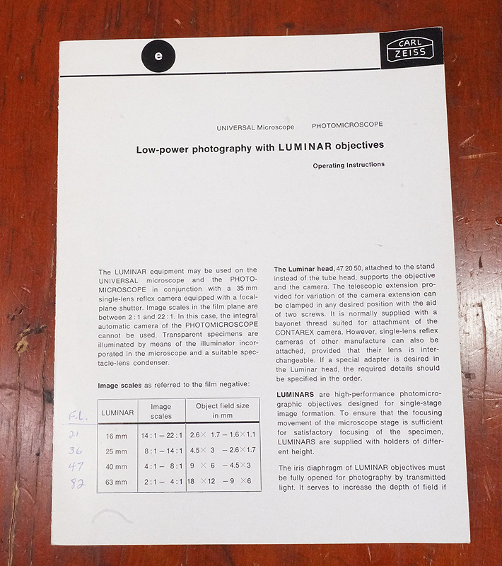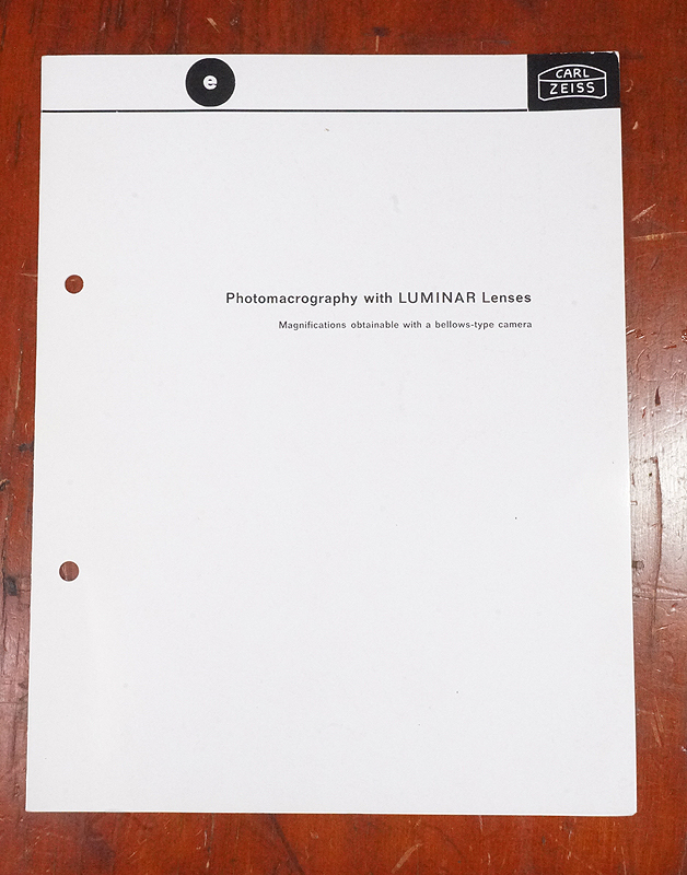 ZEISS TABLE REPRODUCTION STAND INSTRUCTION BOOK, EX