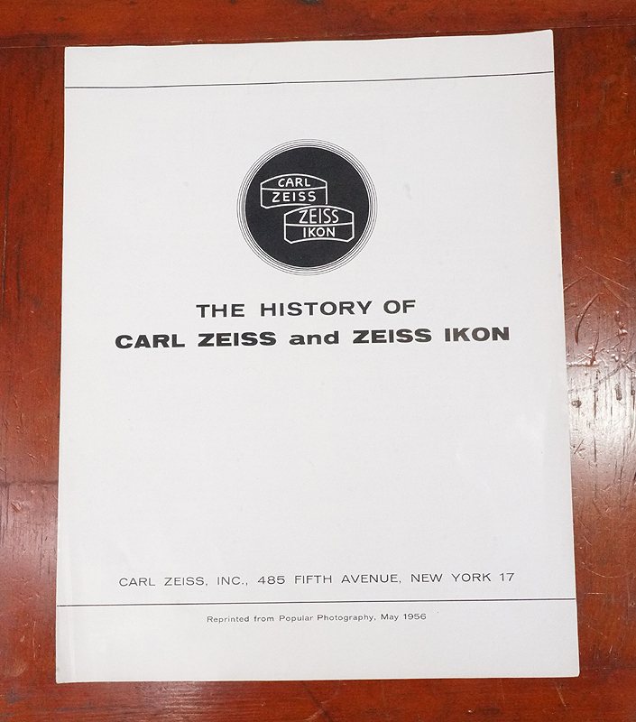 ZEISS THE HISTORY OF CARL ZEISS AND ZEISS IKON, MAY 1956, CAM-661 (1-58- 10), SIX PAGES, LOOKS EX