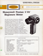 | Honeywell Pentax 1/21 degree Spotmeter Dealer Notebook Page |